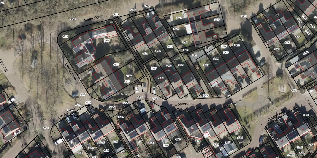 Gebruik de zoekbalk of klik op een perceel voor informatie over de adressen binnen dit perceel.