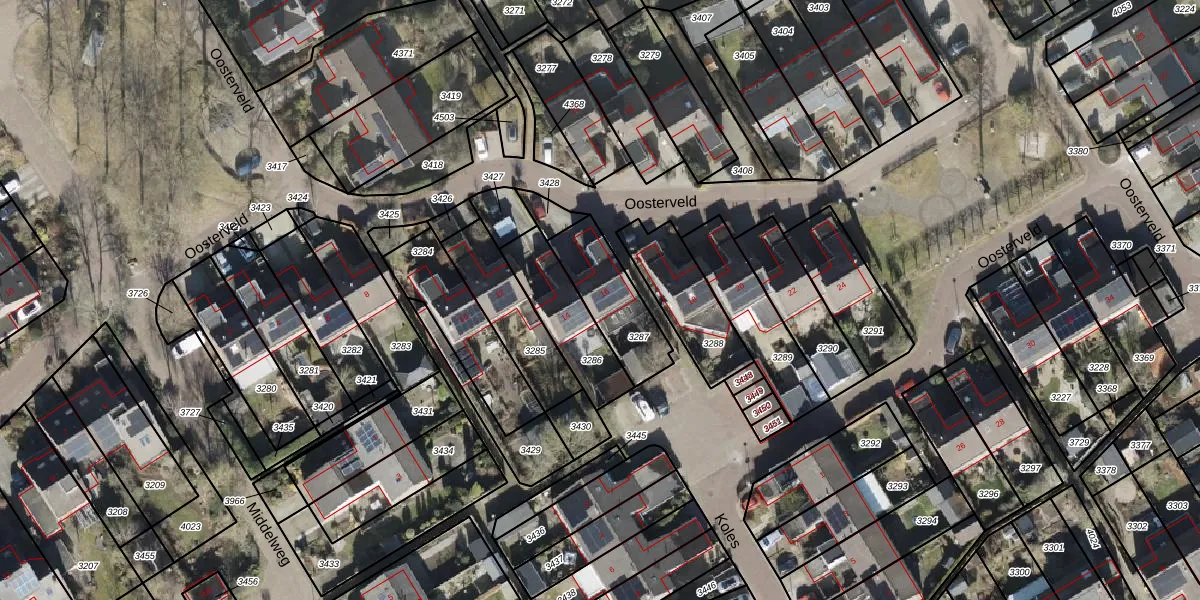 Het perceel waarop Oosterveld 16 staat heeft een oppervlakte van 241 m². Dit is een middelgroot perceel. De perceeloppervlakte wordt geregistreerd door het Kadaster. Gedetailleerde informatie over de maten van dit perceel kunt u vinden in het rapport Kadastrale kaart met maatvoering van Oosterveld 16.