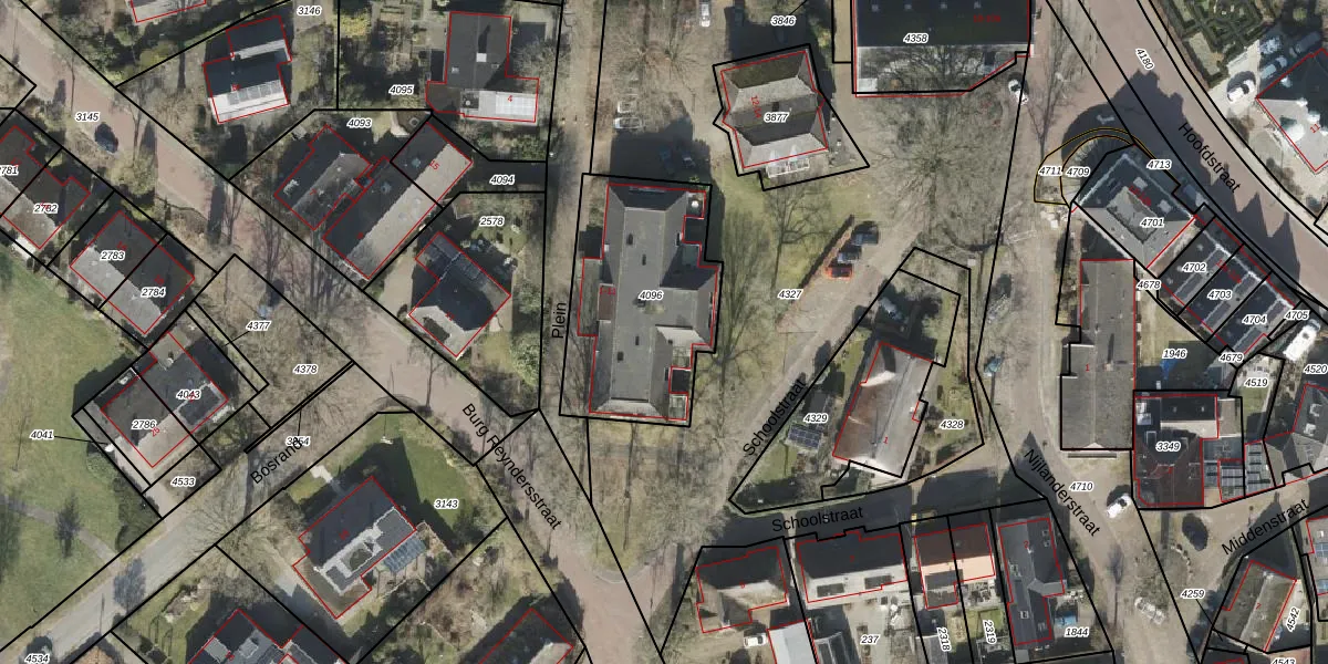 Plein 4 is gelegen op kadastraal perceel RDE00R4096. Deze kadastrale aanduiding is uniek en wordt gebruikt door het Kadaster om eigendomsrechten en andere zakelijke rechten vast te leggen. Het perceel maakt onderdeel uit van de kadastrale gemeente Rolde.