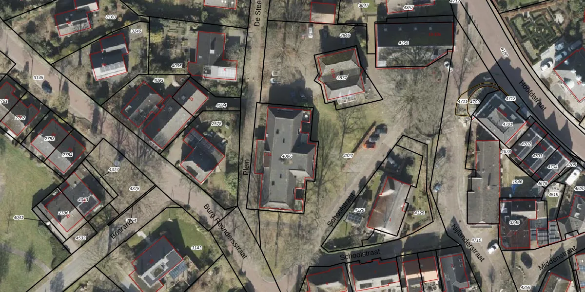Plein 8 is gelegen op kadastraal perceel RDE00R4096. Deze kadastrale aanduiding is uniek en wordt gebruikt door het Kadaster om eigendomsrechten en andere zakelijke rechten vast te leggen. Het perceel maakt onderdeel uit van de kadastrale gemeente Rolde.