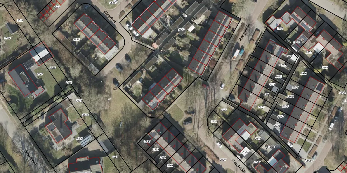 Riegheide 16 is gelegen op kadastraal perceel RDE00L3320. Deze kadastrale aanduiding is uniek en wordt gebruikt door het Kadaster om eigendomsrechten en andere zakelijke rechten vast te leggen. Het perceel maakt onderdeel uit van de kadastrale gemeente Rolde.
