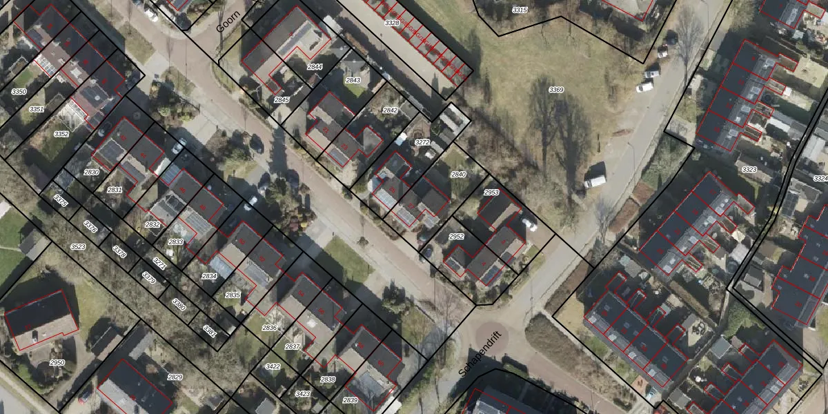 Gebruik de zoekbalk of klik op een perceel voor informatie over de adressen binnen dit perceel.