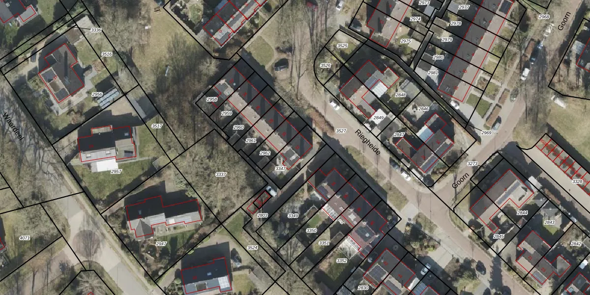 Riegheide 32 is gelegen op kadastraal perceel RDE00L3347. Deze kadastrale aanduiding is uniek en wordt gebruikt door het Kadaster om eigendomsrechten en andere zakelijke rechten vast te leggen. Het perceel maakt onderdeel uit van de kadastrale gemeente Rolde.