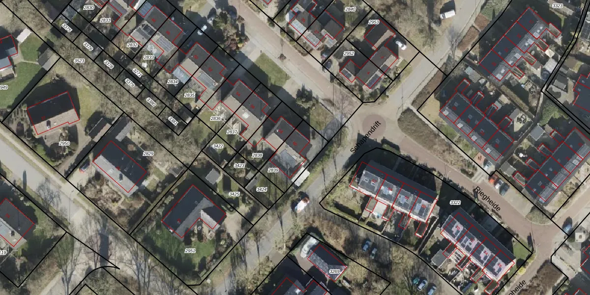 Het perceel waarop Riegheide 60 staat heeft een oppervlakte van 265 m². Dit is een middelgroot perceel. De perceeloppervlakte wordt geregistreerd door het Kadaster. Gedetailleerde informatie over de maten van dit perceel kunt u vinden in het rapport Kadastrale kaart met maatvoering van Riegheide 60.