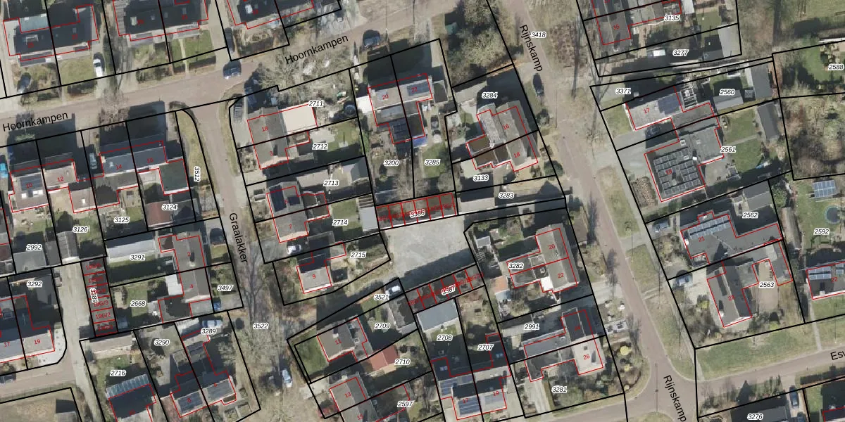 Rijnskamp 18-G-3 is gelegen op kadastraal perceel RDE00L3386. Deze kadastrale aanduiding is uniek en wordt gebruikt door het Kadaster om eigendomsrechten en andere zakelijke rechten vast te leggen. Het perceel maakt onderdeel uit van de kadastrale gemeente Rolde.