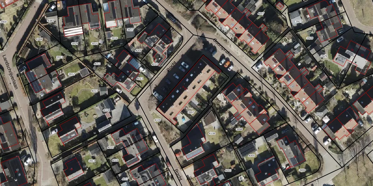 Het perceel waarop Rocht 24 staat heeft een oppervlakte van 744 m². Dit is een groot perceel. De perceeloppervlakte wordt geregistreerd door het Kadaster. Gedetailleerde informatie over de maten van dit perceel kunt u vinden in het rapport Kadastrale kaart met maatvoering van Rocht 24.