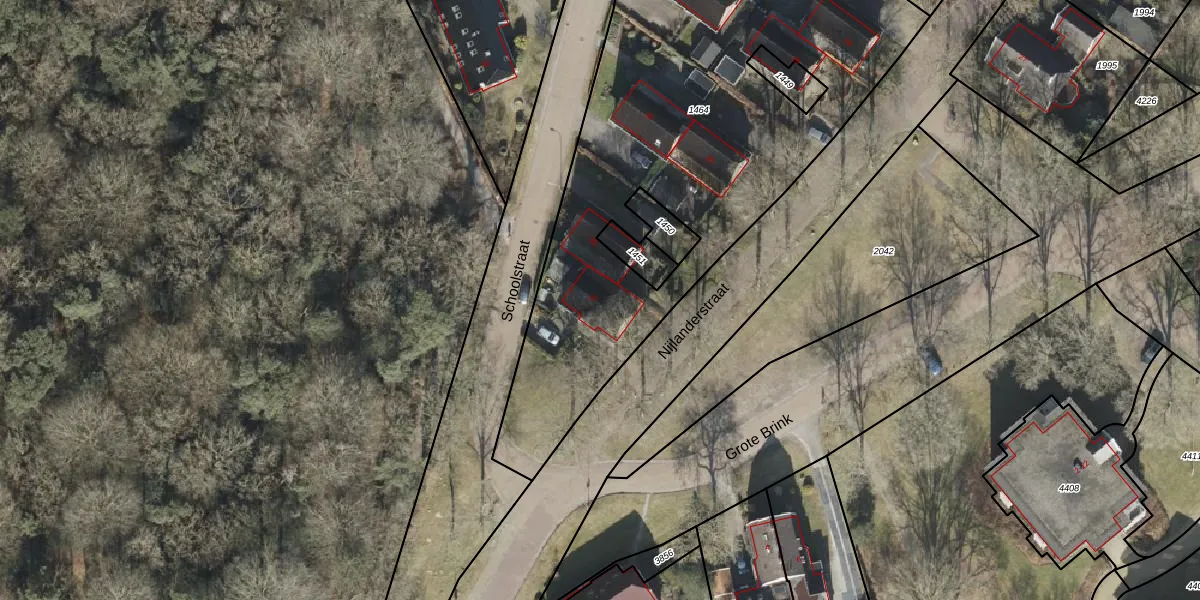 Het perceel waarop Schoolstraat 37 staat heeft een oppervlakte van 2850 m². Dit is een zeer groot perceel. De perceeloppervlakte wordt geregistreerd door het Kadaster. Gedetailleerde informatie over de maten van dit perceel kunt u vinden in het rapport Kadastrale kaart met maatvoering van Schoolstraat 37.