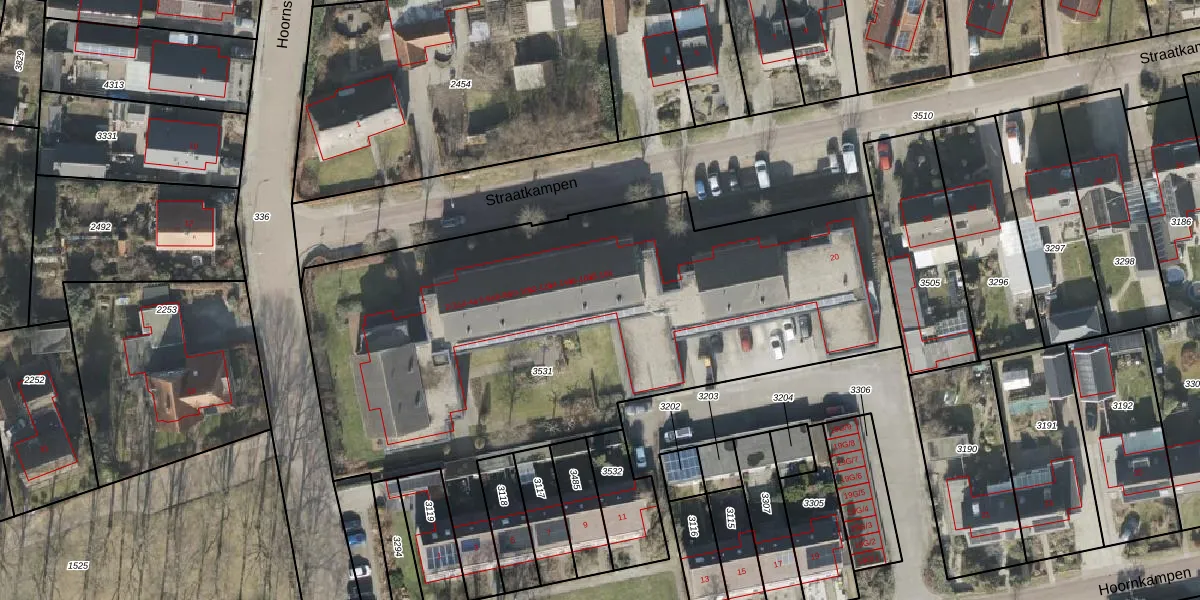Het perceel waarop Straatkampen 16 staat heeft een oppervlakte van 3288 m². Dit is een zeer groot perceel. De perceeloppervlakte wordt geregistreerd door het Kadaster. Gedetailleerde informatie over de maten van dit perceel kunt u vinden in het rapport Kadastrale kaart met maatvoering van Straatkampen 16.