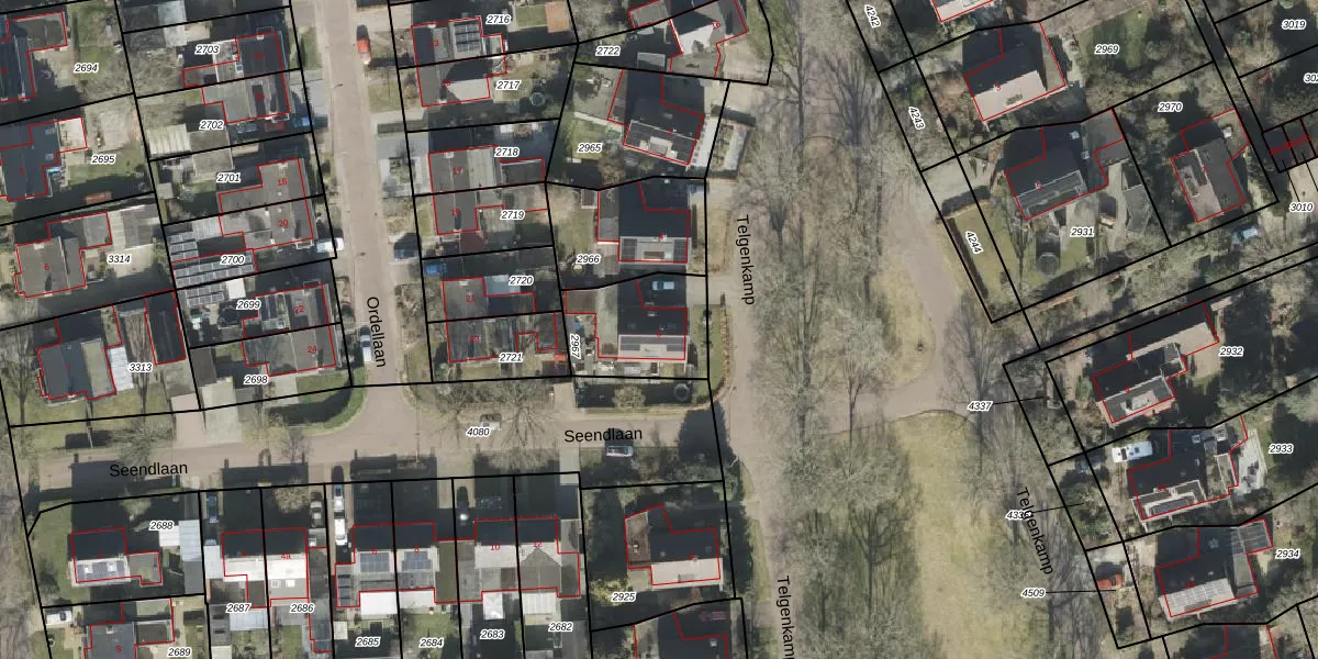 Gebruik de zoekbalk of klik op een perceel voor informatie over de adressen binnen dit perceel.