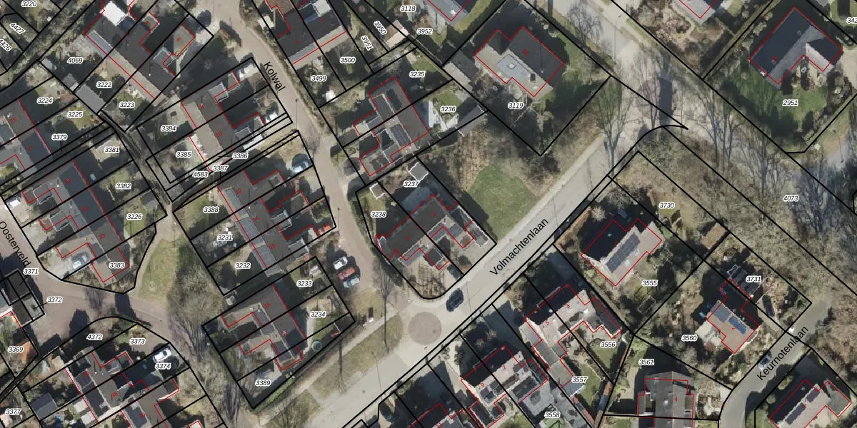Volmachtenlaan 2 is gelegen op kadastraal perceel RDE00R3237. Deze kadastrale aanduiding is uniek en wordt gebruikt door het Kadaster om eigendomsrechten en andere zakelijke rechten vast te leggen. Het perceel maakt onderdeel uit van de kadastrale gemeente Rolde.