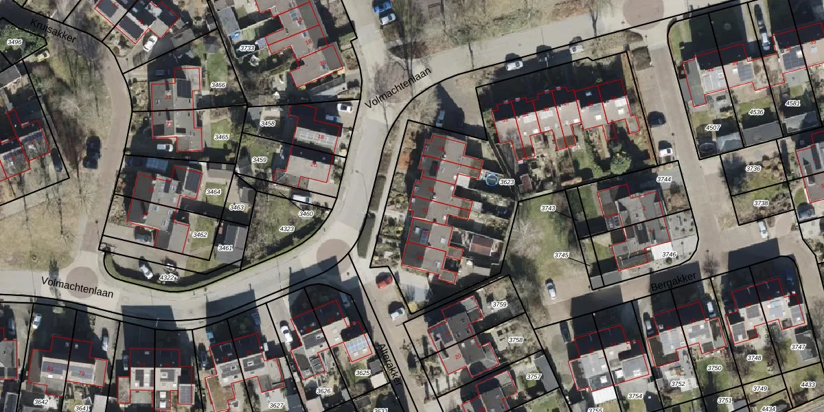 Volmachtenlaan 61 is gelegen op kadastraal perceel RDE00R3623. Deze kadastrale aanduiding is uniek en wordt gebruikt door het Kadaster om eigendomsrechten en andere zakelijke rechten vast te leggen. Het perceel maakt onderdeel uit van de kadastrale gemeente Rolde.