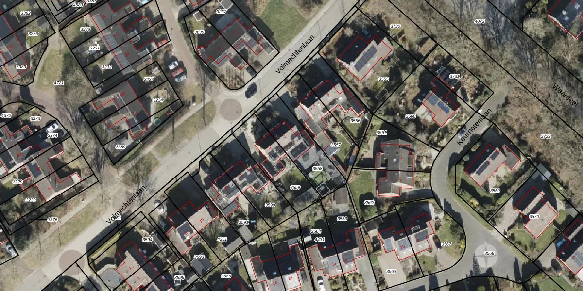 Volmachtenlaan 7 is gelegen op kadastraal perceel RDE00R3558. Deze kadastrale aanduiding is uniek en wordt gebruikt door het Kadaster om eigendomsrechten en andere zakelijke rechten vast te leggen. Het perceel maakt onderdeel uit van de kadastrale gemeente Rolde.