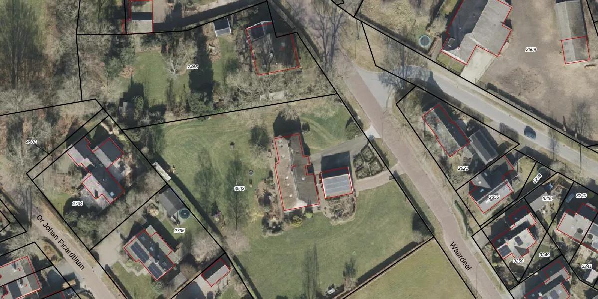 Het perceel waarop Waardeel 4 staat heeft een oppervlakte van 4549 m². Dit is een zeer groot perceel. De perceeloppervlakte wordt geregistreerd door het Kadaster. Gedetailleerde informatie over de maten van dit perceel kunt u vinden in het rapport Kadastrale kaart met maatvoering van Waardeel 4.