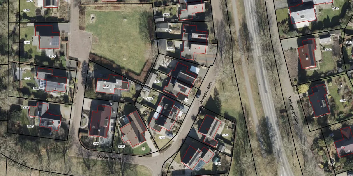 Wolvenveen 15 is gelegen op kadastraal perceel RDE00R3797. Deze kadastrale aanduiding is uniek en wordt gebruikt door het Kadaster om eigendomsrechten en andere zakelijke rechten vast te leggen. Het perceel maakt onderdeel uit van de kadastrale gemeente Rolde.