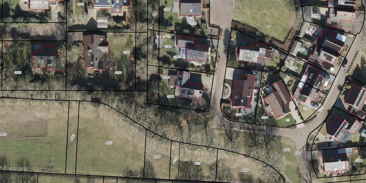 Het perceel waarop Wolvenveen 26 staat heeft een oppervlakte van 600 m². Dit is een groot perceel. De perceeloppervlakte wordt geregistreerd door het Kadaster. Gedetailleerde informatie over de maten van dit perceel kunt u vinden in het rapport Kadastrale kaart met maatvoering van Wolvenveen 26.