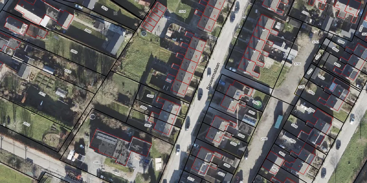 Het perceel waarop Bauwemalaan 13 staat heeft een oppervlakte van 3611 m². Dit is een zeer groot perceel. De perceeloppervlakte wordt geregistreerd door het Kadaster. Gedetailleerde informatie over de maten van dit perceel kunt u vinden in het rapport Kadastrale kaart met maatvoering van Bauwemalaan 13.