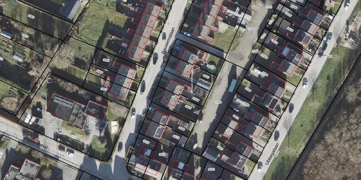 Gebruik de zoekbalk of klik op een perceel voor informatie over de adressen binnen dit perceel.