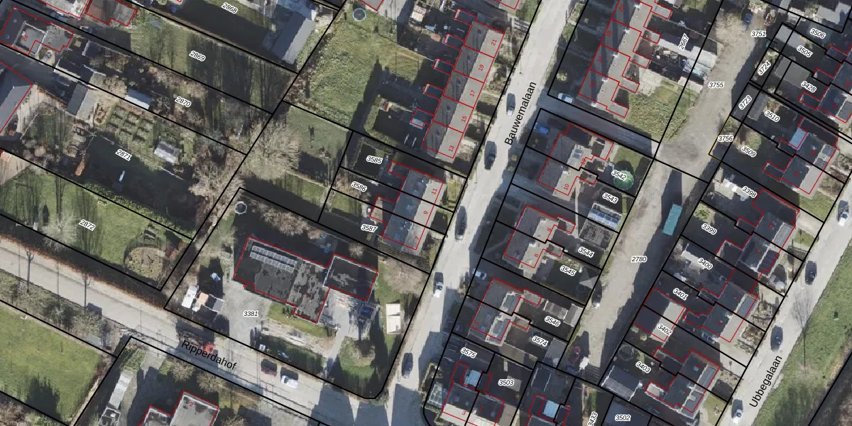 Bauwemalaan 9 is gelegen op kadastraal perceel UHZ02D3586. Deze kadastrale aanduiding is uniek en wordt gebruikt door het Kadaster om eigendomsrechten en andere zakelijke rechten vast te leggen. Het perceel maakt onderdeel uit van de kadastrale gemeente Uithuizermeeden.