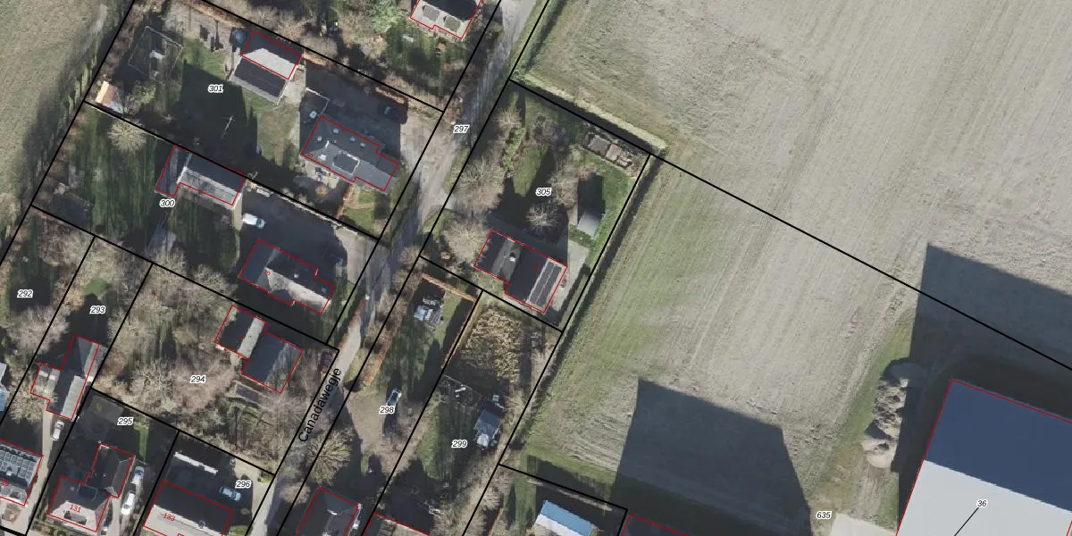 Het perceel waarop Canadawegje 2 staat heeft een oppervlakte van 1117 m². Dit is een zeer groot perceel. De perceeloppervlakte wordt geregistreerd door het Kadaster. Gedetailleerde informatie over de maten van dit perceel kunt u vinden in het rapport Kadastrale kaart met maatvoering van Canadawegje 2.