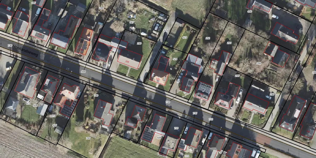 Gebruik de zoekbalk of klik op een perceel voor informatie over de adressen binnen dit perceel.