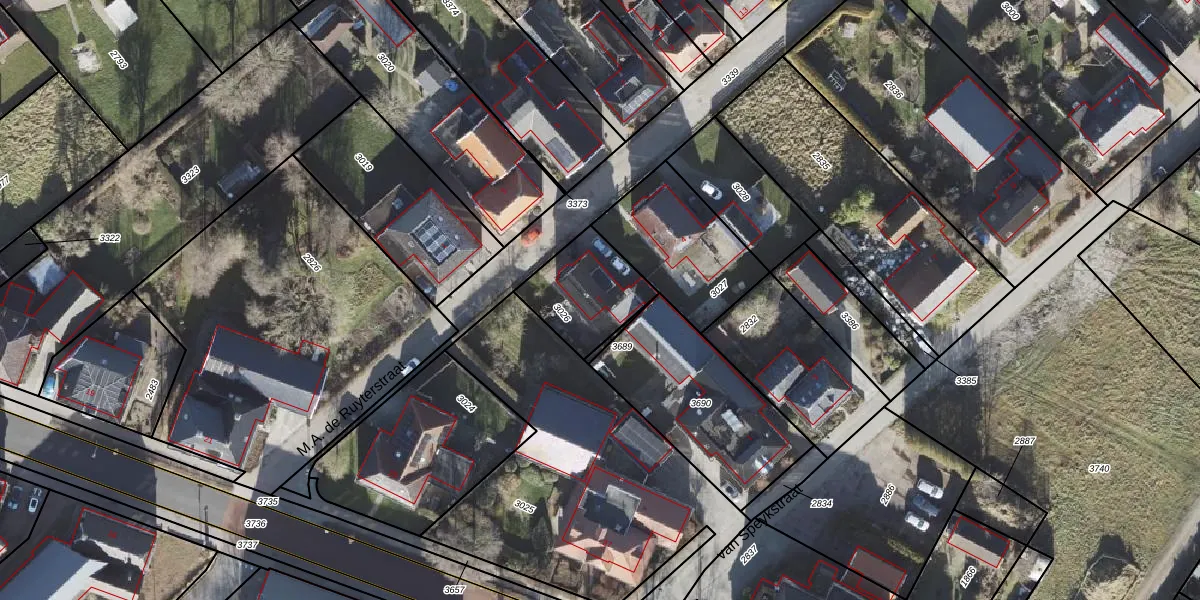 Het perceel waarop M.A. de Ruyterstraat 2 staat heeft een oppervlakte van 280 m². Dit is een middelgroot perceel. De perceeloppervlakte wordt geregistreerd door het Kadaster. Gedetailleerde informatie over de maten van dit perceel kunt u vinden in het rapport Kadastrale kaart met maatvoering van M.A. de Ruyterstraat 2.