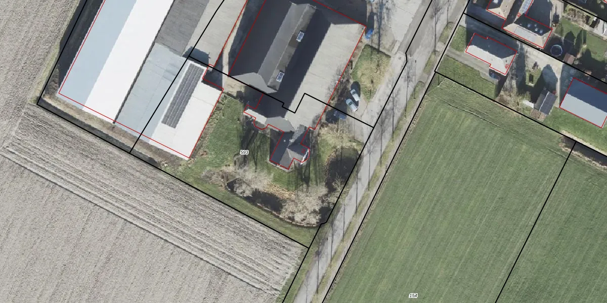 Het adres is gelegen op perceel 593 in de sectie L en de kadastrale gemeente Uithuizermeeden. De kadastrale aanduiding is aldus UHZ02-L-593. De gemiddelde perceelgrootte in Uithuizermeeden is 1,6 ha. Dit perceel is kleiner: de perceeloppervlakte bedraagt 2690 m². Het grootste perceel in de kadastrale gemeente is 2,15 km². Het kleinste perceel heeft een oppervlakte van 0 m². Er zijn geen andere adressen aanwezig op het perceel. In de Basisregistratie Kadaster (BRK) werden de grenzen van het perceel geregistreerd op 03-04-2007.