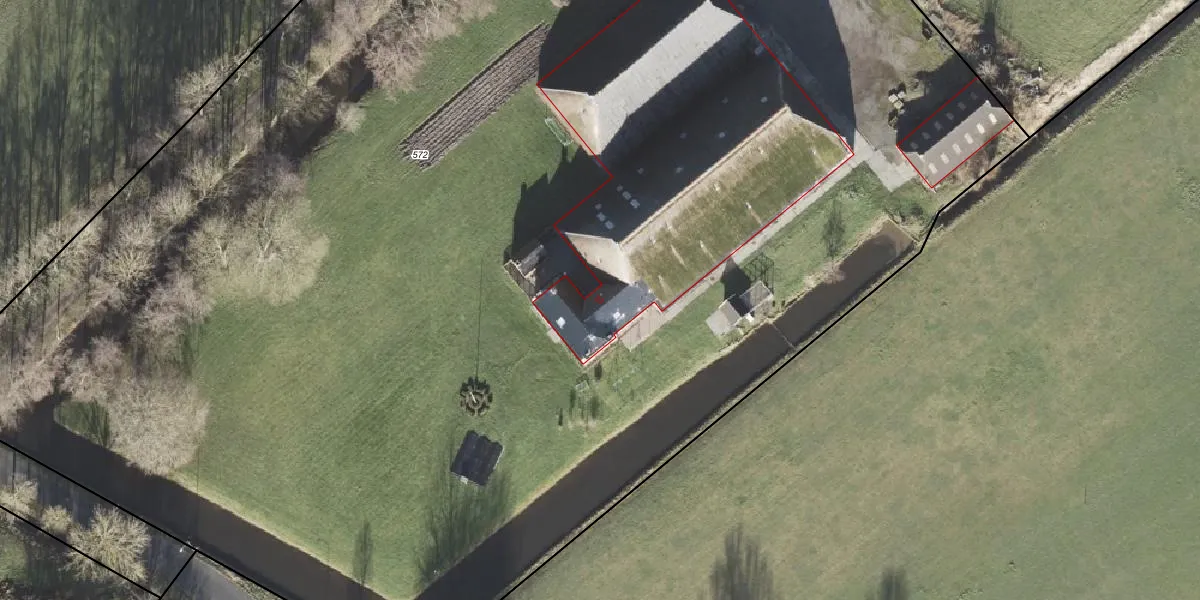 Het adres is gelegen op perceel 572 in de sectie L en de kadastrale gemeente Uithuizermeeden. De kadastrale aanduiding is aldus UHZ02-L-572. De gemiddelde perceelgrootte in Uithuizermeeden is 1,6 ha. Dit perceel is kleiner: de perceeloppervlakte bedraagt 1,4 ha. De grootste perceeloppervlakte in de kadastrale gemeente is 2,15 km². De kleinste oppervlakte bedraagt 0 m². Er zijn geen andere adressen aanwezig op het perceel. In de Basisregistratie Kadaster (BRK) werden de grenzen van het perceel geregistreerd op 27-11-2002.