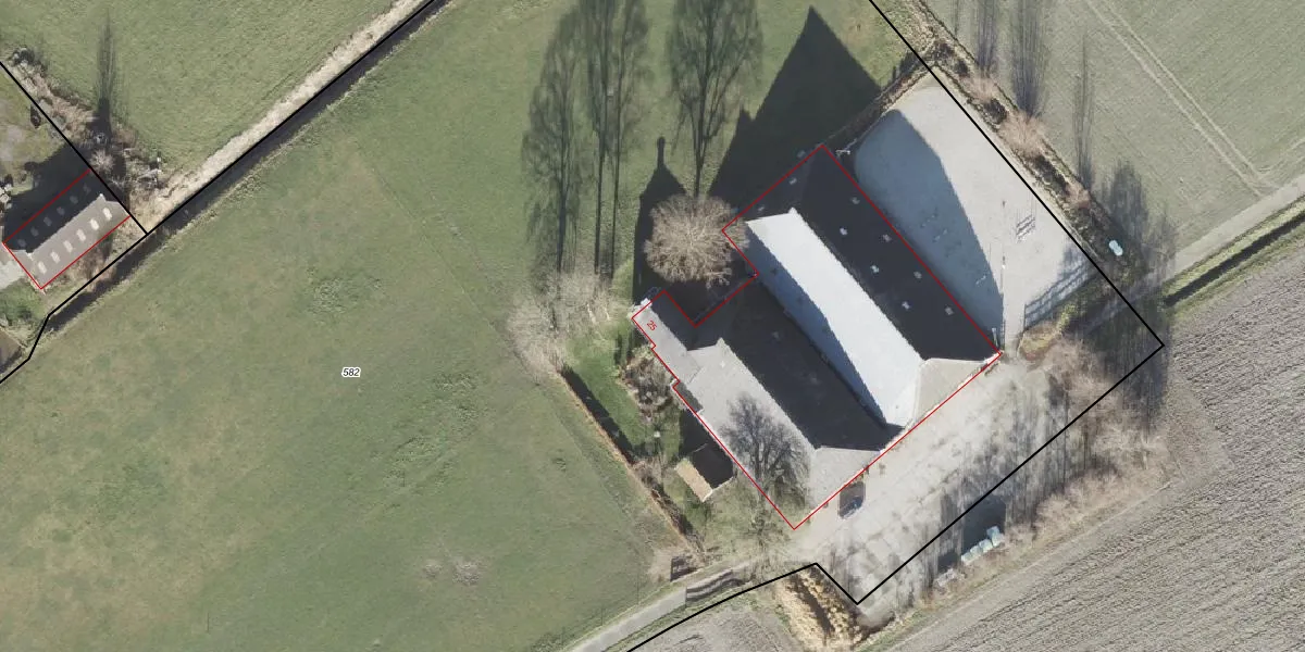 Het adres is gelegen op perceel 582 in de sectie L en de kadastrale gemeente Uithuizermeeden. De kadastrale aanduiding is aldus UHZ02-L-582. Het perceel is met 2,1 ha relatief groot. Het gemiddelde ligt in de kadastrale gemeente Uithuizermeeden op 1,6 ha. De grootste perceeloppervlakte in de kadastrale gemeente is 2,15 km². De kleinste oppervlakte bedraagt 0 m². Er zijn geen andere adressen aanwezig op het perceel. De huidige grenzen van het perceel zijn digitaal in de Basisregistratie Kadaster (BRK) geregistreerd op 27-11-2002.
