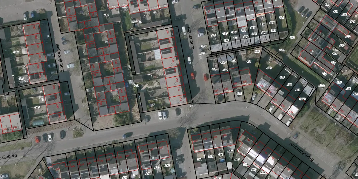 Het perceel waarop Abelenberg 112 staat heeft een oppervlakte van 5694 m². Dit is een zeer groot perceel. De perceeloppervlakte wordt geregistreerd door het Kadaster. Gedetailleerde informatie over de maten van dit perceel kunt u vinden in het rapport Kadastrale kaart met maatvoering van Abelenberg 112.
