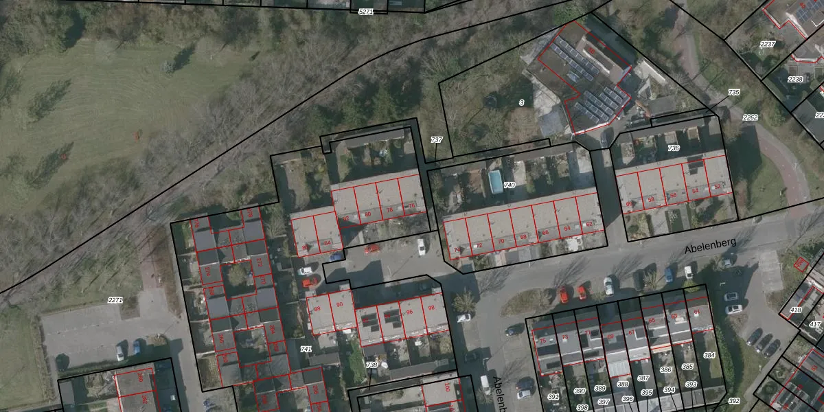 Het perceel waarop Abelenberg 76 staat heeft een oppervlakte van 5694 m². Dit is een zeer groot perceel. De perceeloppervlakte wordt geregistreerd door het Kadaster. Gedetailleerde informatie over de maten van dit perceel kunt u vinden in het rapport Kadastrale kaart met maatvoering van Abelenberg 76.