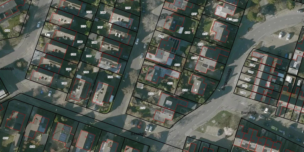 Het perceel waarop Basaltdijk 12 staat heeft een oppervlakte van 385 m². Dit is een groot perceel. De perceeloppervlakte wordt geregistreerd door het Kadaster. Gedetailleerde informatie over de maten van dit perceel kunt u vinden in het rapport Kadastrale kaart met maatvoering van Basaltdijk 12.