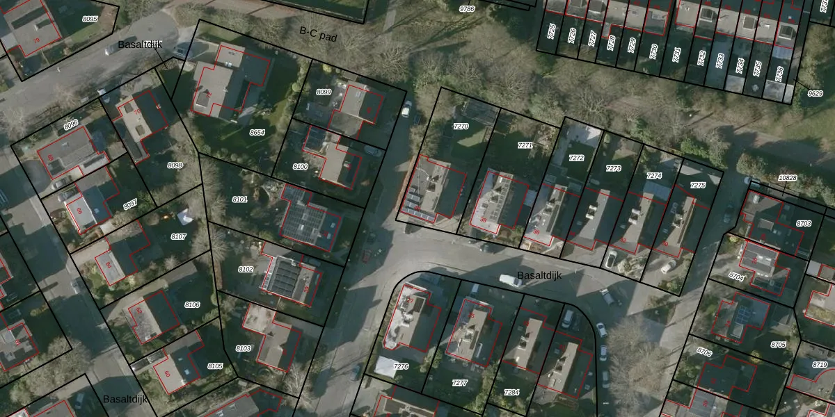 Het perceel waarop Basaltdijk 40 staat heeft een oppervlakte van 498 m². Dit is een groot perceel. De perceeloppervlakte wordt geregistreerd door het Kadaster. Gedetailleerde informatie over de maten van dit perceel kunt u vinden in het rapport Kadastrale kaart met maatvoering van Basaltdijk 40.