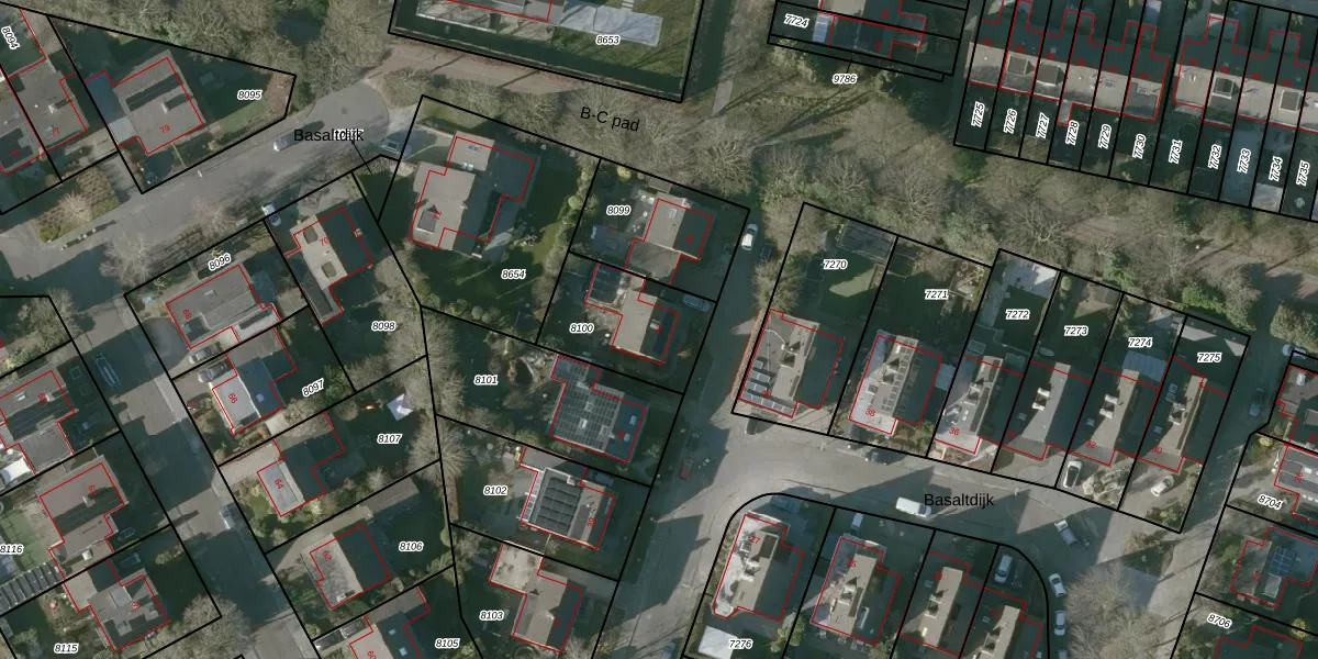 Het perceel waarop Basaltdijk 43 staat heeft een oppervlakte van 355 m². Dit is een groot perceel. De perceeloppervlakte wordt geregistreerd door het Kadaster. Gedetailleerde informatie over de maten van dit perceel kunt u vinden in het rapport Kadastrale kaart met maatvoering van Basaltdijk 43.