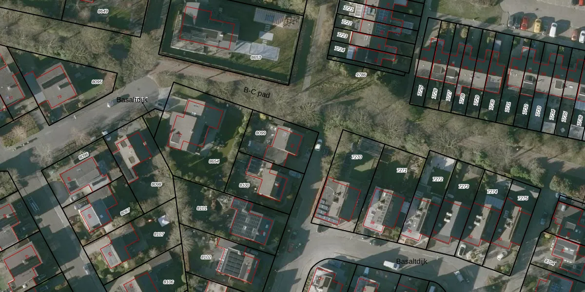 Het perceel waarop Basaltdijk 45 staat heeft een oppervlakte van 358 m². Dit is een groot perceel. De perceeloppervlakte wordt geregistreerd door het Kadaster. Gedetailleerde informatie over de maten van dit perceel kunt u vinden in het rapport Kadastrale kaart met maatvoering van Basaltdijk 45.