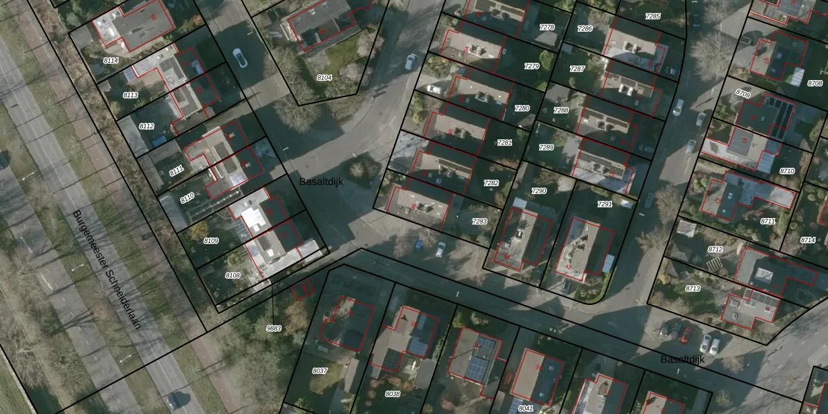 Het perceel waarop Basaltdijk 46 staat heeft een oppervlakte van 303 m². Dit is een groot perceel. De perceeloppervlakte wordt geregistreerd door het Kadaster. Gedetailleerde informatie over de maten van dit perceel kunt u vinden in het rapport Kadastrale kaart met maatvoering van Basaltdijk 46.