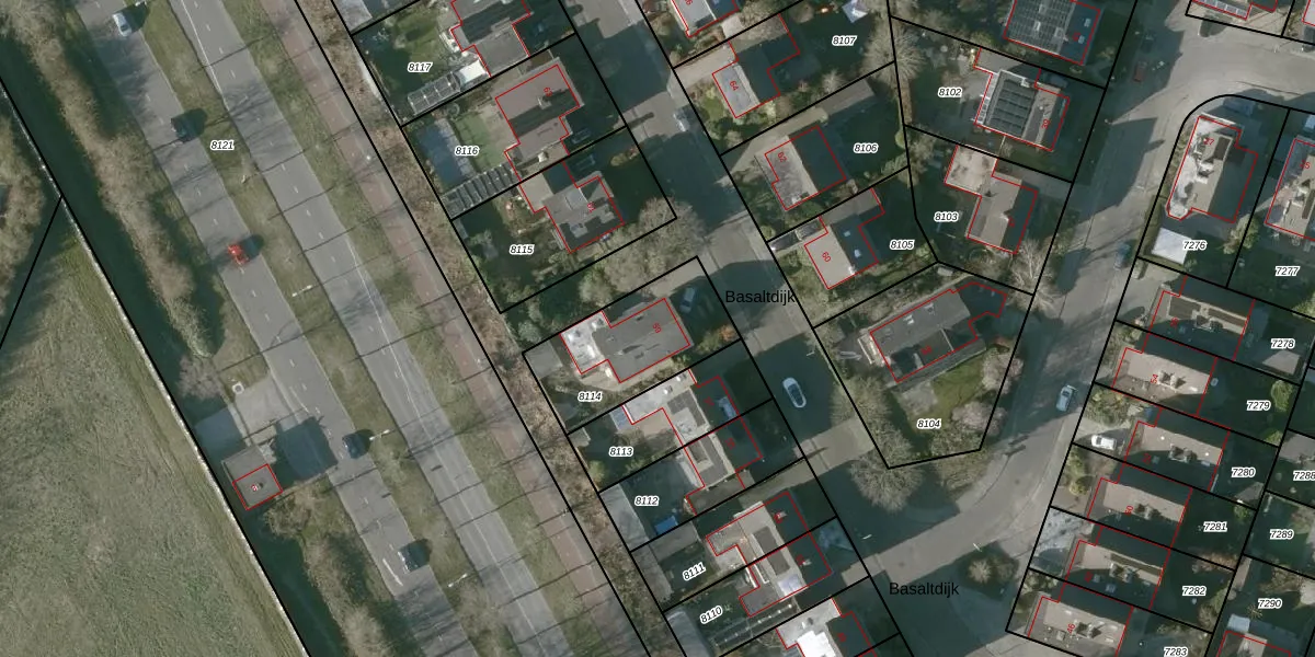 Het perceel waarop Basaltdijk 59 staat heeft een oppervlakte van 424 m². Dit is een groot perceel. De perceeloppervlakte wordt geregistreerd door het Kadaster. Gedetailleerde informatie over de maten van dit perceel kunt u vinden in het rapport Kadastrale kaart met maatvoering van Basaltdijk 59.