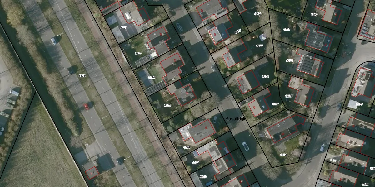 Het perceel waarop Basaltdijk 61 staat heeft een oppervlakte van 485 m². Dit is een groot perceel. De perceeloppervlakte wordt geregistreerd door het Kadaster. Gedetailleerde informatie over de maten van dit perceel kunt u vinden in het rapport Kadastrale kaart met maatvoering van Basaltdijk 61.