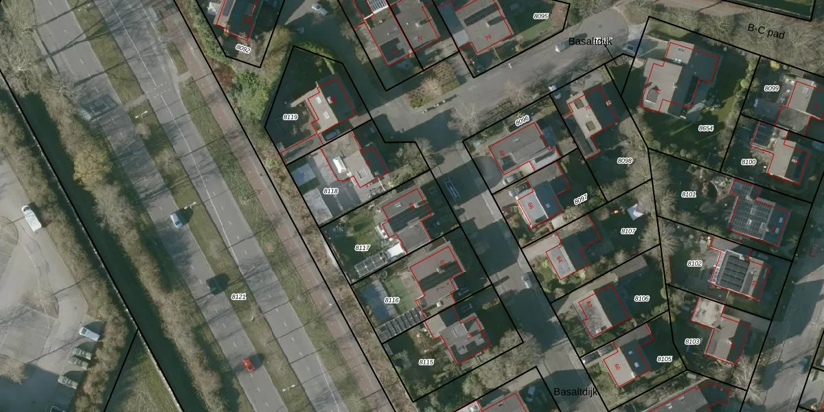 Het perceel waarop Basaltdijk 65 staat heeft een oppervlakte van 485 m². Dit is een groot perceel. De perceeloppervlakte wordt geregistreerd door het Kadaster. Gedetailleerde informatie over de maten van dit perceel kunt u vinden in het rapport Kadastrale kaart met maatvoering van Basaltdijk 65.