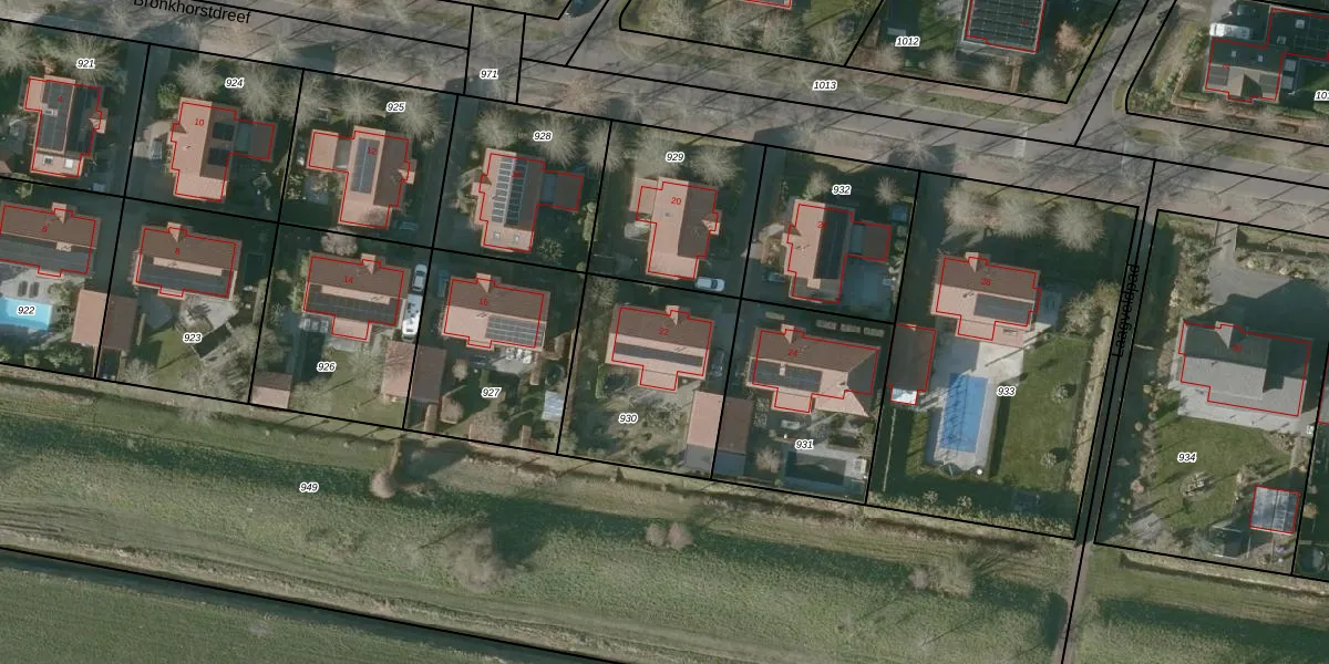 Gebruik de zoekbalk of klik op een perceel voor informatie over de adressen binnen dit perceel.