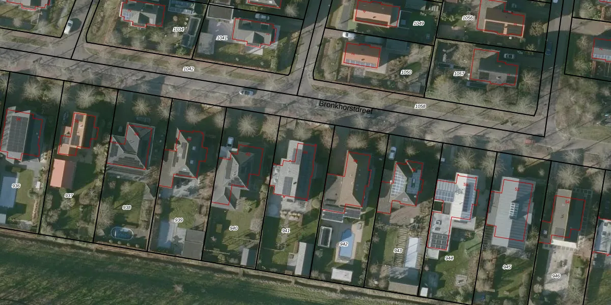 Gebruik de zoekbalk of klik op een perceel voor informatie over de adressen binnen dit perceel.