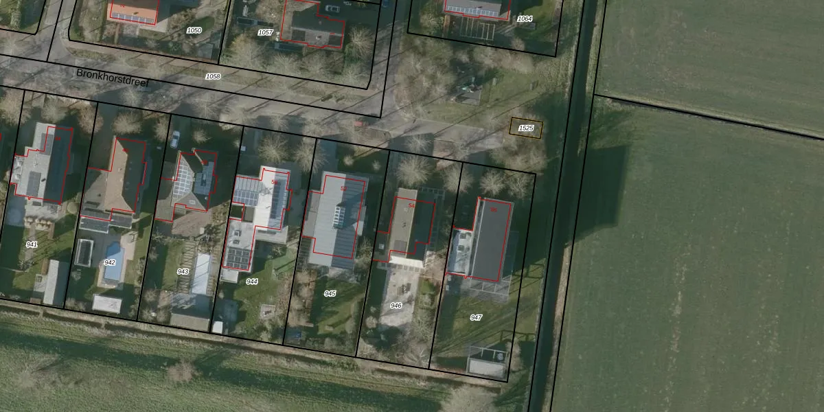 Het perceel waarop Bronkhorstdreef 54 staat heeft een oppervlakte van 914 m². Dit is een groot perceel. De perceeloppervlakte wordt geregistreerd door het Kadaster. Gedetailleerde informatie over de maten van dit perceel kunt u vinden in het rapport Kadastrale kaart met maatvoering van Bronkhorstdreef 54.