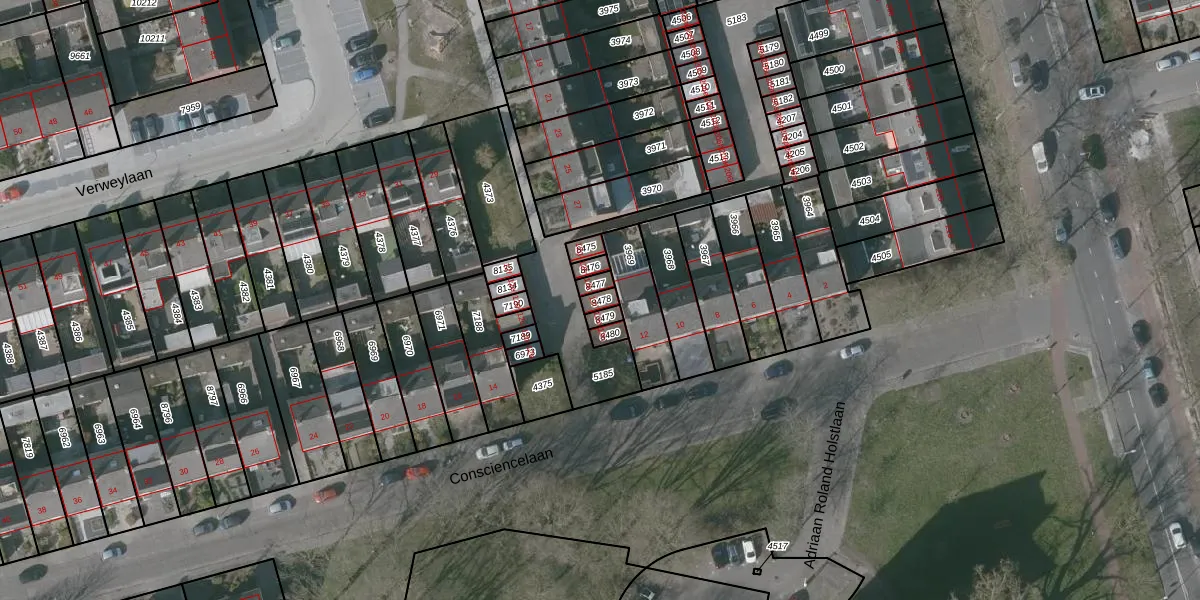 Het perceel waarop Consciencelaan 12-l staat heeft een oppervlakte van 18 m². Dit is een klein perceel. De perceeloppervlakte wordt geregistreerd door het Kadaster. Gedetailleerde informatie over de maten van dit perceel kunt u vinden in het rapport Kadastrale kaart met maatvoering van Consciencelaan 12-l.