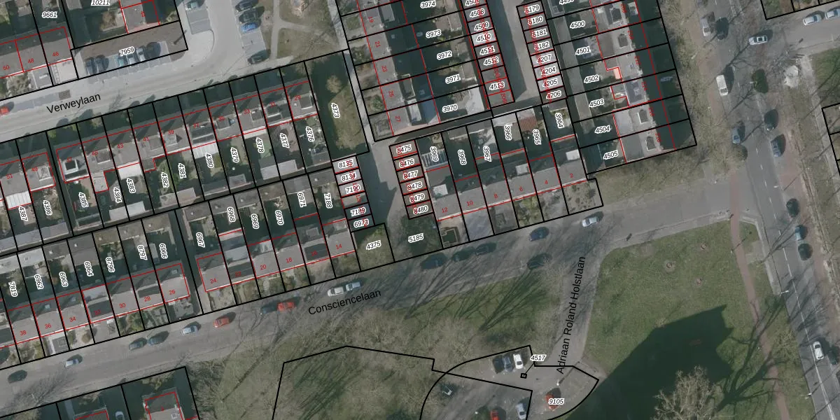 Consciencelaan 12-n is gelegen op kadastraal perceel RSD00D8480. Deze kadastrale aanduiding is uniek en wordt gebruikt door het Kadaster om eigendomsrechten en andere zakelijke rechten vast te leggen. Het perceel maakt onderdeel uit van de kadastrale gemeente Roosendaal en Nispen.