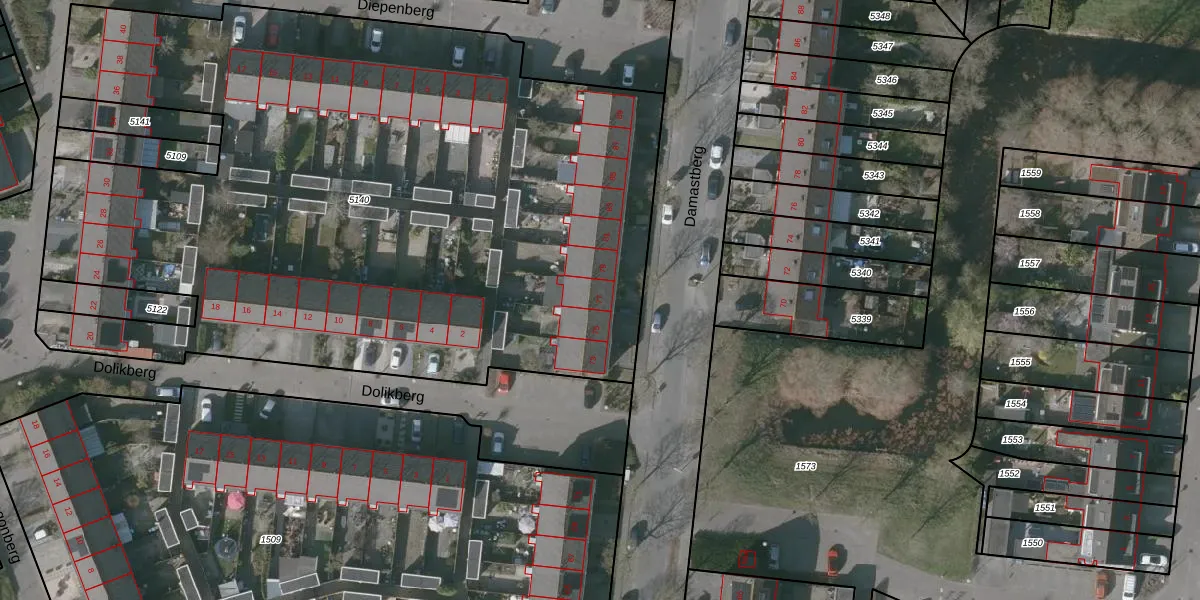 Het perceel waarop Damastberg 77 staat heeft een oppervlakte van 5173 m². Dit is een zeer groot perceel. De perceeloppervlakte wordt geregistreerd door het Kadaster. Gedetailleerde informatie over de maten van dit perceel kunt u vinden in het rapport Kadastrale kaart met maatvoering van Damastberg 77.