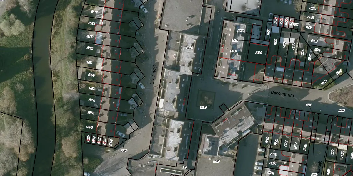 Het perceel waarop Dijkcentrum 105 staat heeft een oppervlakte van 2680 m². Dit is een zeer groot perceel. De perceeloppervlakte wordt geregistreerd door het Kadaster. Gedetailleerde informatie over de maten van dit perceel kunt u vinden in het rapport Kadastrale kaart met maatvoering van Dijkcentrum 105.