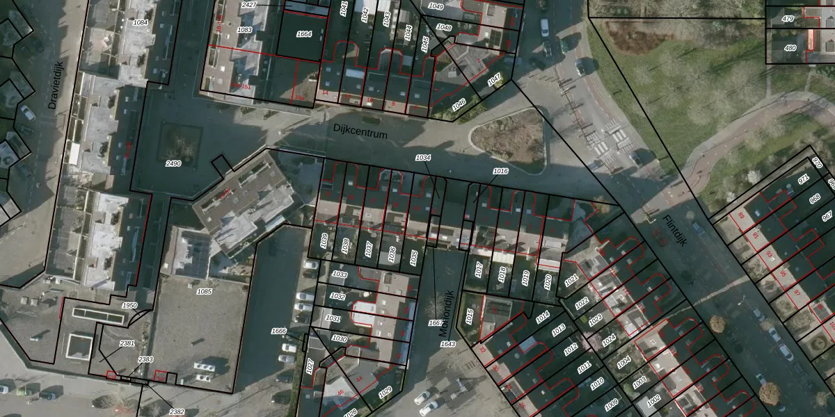 Gebruik de zoekbalk of klik op een perceel voor informatie over de adressen binnen dit perceel.