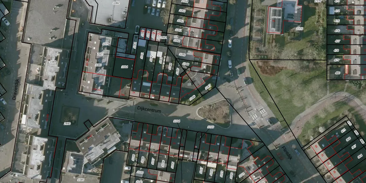 Gebruik de zoekbalk of klik op een perceel voor informatie over de adressen binnen dit perceel.