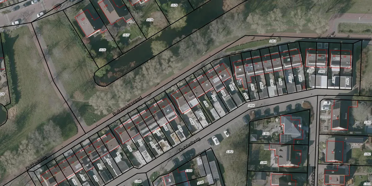 Het perceel waarop Dubbelberg 48 staat heeft een oppervlakte van 154 m². Dit is een middelgroot perceel. De perceeloppervlakte wordt geregistreerd door het Kadaster. Gedetailleerde informatie over de maten van dit perceel kunt u vinden in het rapport Kadastrale kaart met maatvoering van Dubbelberg 48.