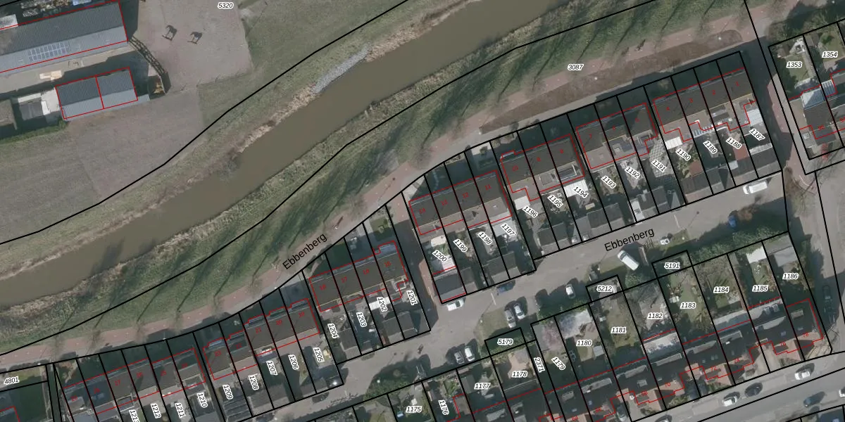 Het perceel waarop Ebbenberg 14 staat heeft een oppervlakte van 187 m². Dit is een middelgroot perceel. De perceeloppervlakte wordt geregistreerd door het Kadaster. Gedetailleerde informatie over de maten van dit perceel kunt u vinden in het rapport Kadastrale kaart met maatvoering van Ebbenberg 14.