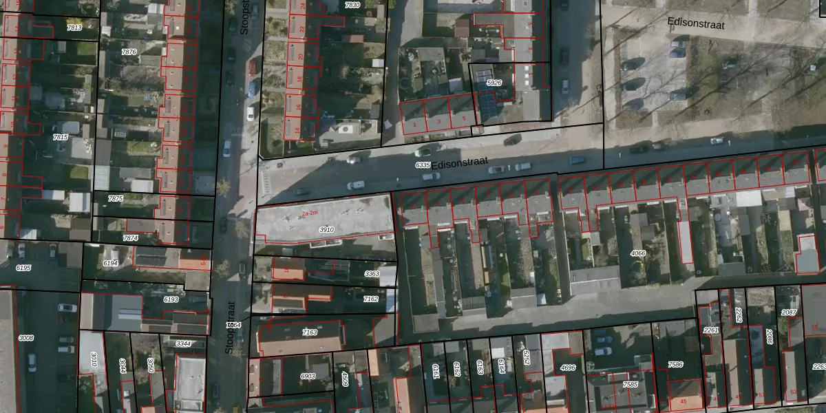 Het perceel waarop Edisonstraat 2 staat heeft een oppervlakte van 4515 m². Dit is een zeer groot perceel. De perceeloppervlakte wordt geregistreerd door het Kadaster. Gedetailleerde informatie over de maten van dit perceel kunt u vinden in het rapport Kadastrale kaart met maatvoering van Edisonstraat 2.